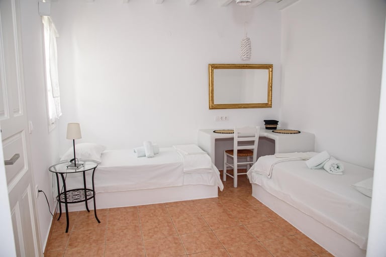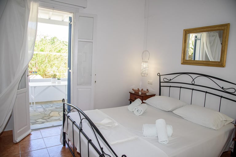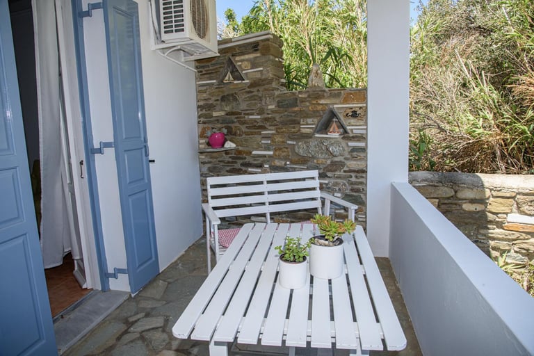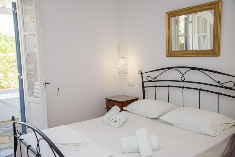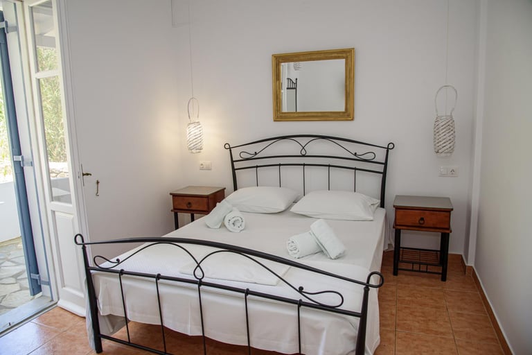 Ένα άνετο δίχωρο διαμέρισμα με δύο υπνοδωμάτια, πλήρως εξοπλισμένη κουζίνα και βεράντα με θέα τον κήπο.