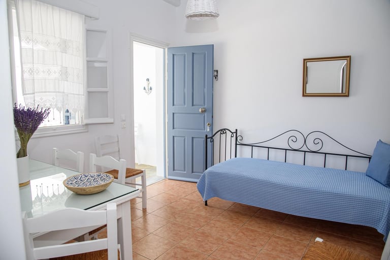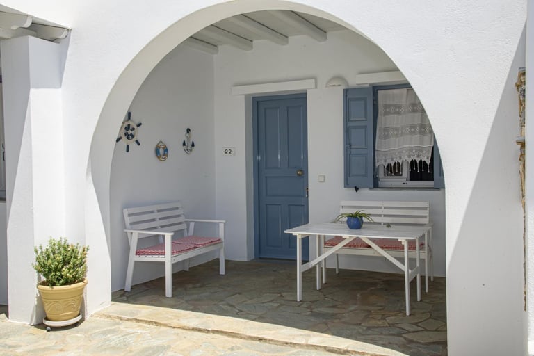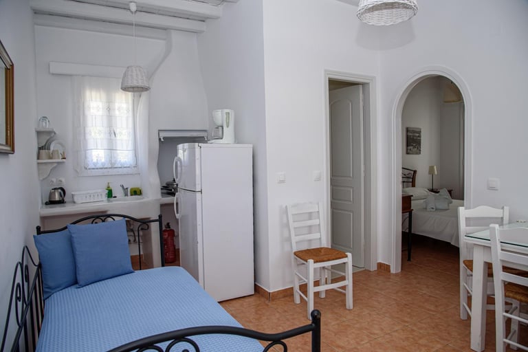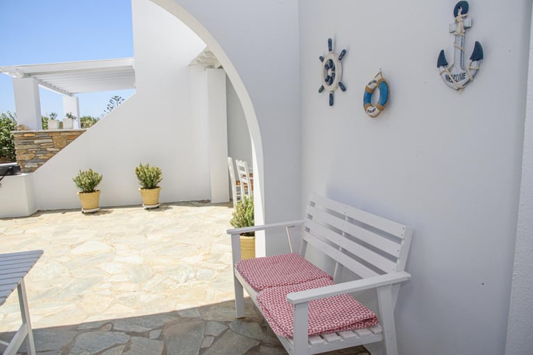Ένα άνετο δίχωρο διαμέρισμα με δύο υπνοδωμάτια, πλήρως εξοπλισμένη κουζίνα και βεράντα με θέα τον κήπο.